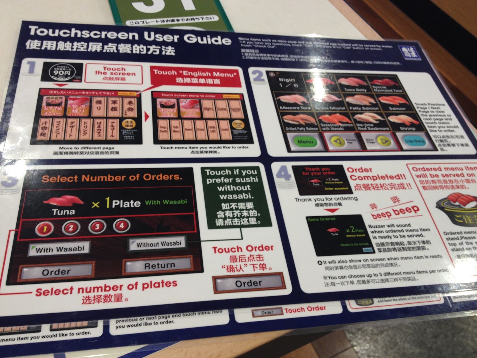 When we arrived at Hamazushi, we were taken aback by the long queue but the queue moved fast, much faster than expected. Since we were famished, we didn't spend time reading the instructions Lol.